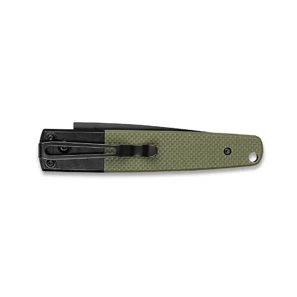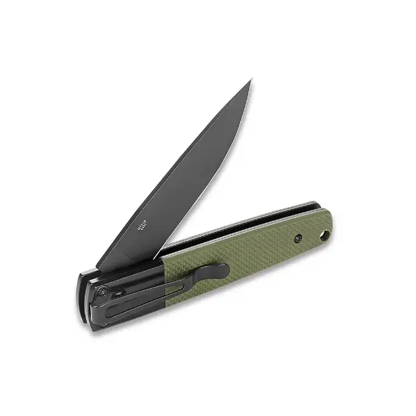 Рукоять выполнена из стеклотекстолита G10 с текстурированной поверхностью, что обеспечивает надёжный и комфортный хват. G10 — это композитный материал, в основе которого лежат стеклоткань и эпоксидная смола. Стекловолокно вымачивается в эпоксидной смоле, после чего подвергается сжатию. На выходе получается прочный и неприхотливый материал, устойчивый к ударам, влаге и высокой температуре. G10 прекрасно противостоит агрессивной внешней среде, благодаря чему имеет высокую популярность у производителей фиксированных и складных ножей. Такие ножи могут иметь самый широкий спектр применения от EDC, до работы в экстремальных условиях. Ещё одно преимущество это стеклотекстолита – он легко поддаётся окрашиванию в любые цвета. Внешне G10 похож на микарту, но превосходит её в прочности и огнестойкости. Для ношения ножа предусмотрена стальная клипса, которая позволяет удобно закрепить его в кармане. Также имеется темлячное отверстие.