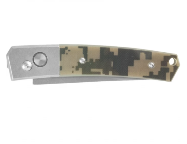 Положение клинка в этой складной модели ножа регулируется при помощи замка Button Lock — это элегантная и удобная система, благодаря которой нож будет открываться и закрываться только по вашему желанию. Основой системы является кнопка на рукояти, которая надежно блокирует лезвие. Это современная и надежная конструкция фиксатора, позволяющая открывать нож одной или двумя руками.