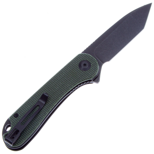 Для рукояти этой модели подобран материал Micarta. Это конструкционный композитный материал, представляющий собой слоистый пластик на основе ткани и полимерного связующего вещества. Микарта устойчива к перепаду температур и не впитывает влагу, различные запахи. Микарта не скользит в руке, даже если ладонь вдруг намокнет. Сбоку есть специальная клипса, с помощью которой нож удобно повесить на карман. На пятке ножа есть отверстие для темляка.