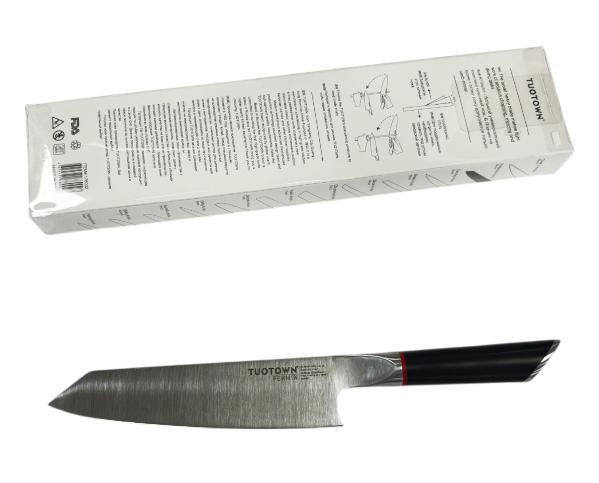 Кухонный нож-шеф Kiritsuke Fermin от производителя Tuotown — универсальный инструмент для кухни, подходит для нарезки мяса, овощей, шинковки зелени и других задач.