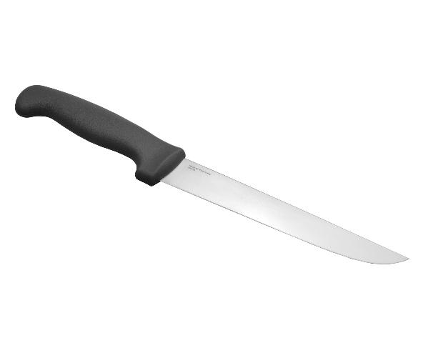 Удобная рукоять ножа сделана из прочного ABC пластика, что обеспечивает его комфортное использование в течение длительного времени и безопасность во время работы. АБС-пластик (акрилонитрилбутадиенстирол) — это ударопрочная техническая термопластическая смола на основе сополимера акрилонитрила с бутадиеном и стиролом. АБС-пластик способен выдерживать значительные механические нагрузки и удары. Материал сохраняет свои свойства при температуре до +90 °C и начинает размягчаться при более высоких значениях, устойчив к воздействию кислот, щелочей и солей. Благодаря эргономичной форме и продуманной рукоятке из ABS пластика, работа с данным ножом будет приятна продолжительное время.