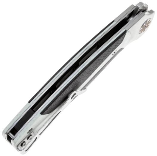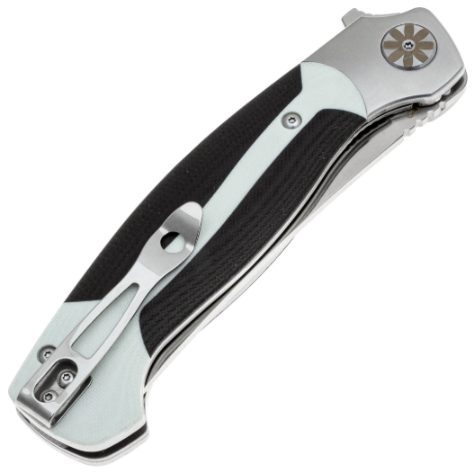 Рукоять выполнена из G10 -— это композитный материал, в основе которого лежат стеклоткань и эпоксидная смола. Стекловолокно вымачивается в эпоксидной смоле, после чего подвергается сжатию. На выходе получается прочный и неприхотливый материал, устойчивый к ударам, влаге и высокой температуре. G10 прекрасно противостоит агрессивной внешней среде, благодаря чему имеет высокую популярность у производителей фиксированных и складных ножей. Такие ножи могут иметь самый широкий спектр применения от EDC, до работы в экстремальных условиях. Ещё одно преимущество это стеклотекстолита – он легко поддаётся окрашиванию в любые цвета. Внешне G10 похож на микарту, но превосходит её в прочности и огнестойкости. Форма рукояти эргономичная, имеется металлическая клипса, которая позволяет закрепить нож на кармане в удобном для вас положении.