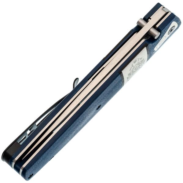 Рукоять выполнена из стеклотекстолита G10 с текстурированной поверхностью, что гарантирует надёжный и комфортный хват в любых условиях. G10 — это композитный материал, в основе которого лежат стеклоткань и эпоксидная смола. Стекловолокно вымачивается в эпоксидной смоле, после чего подвергается сжатию. На выходе получается прочный и неприхотливый лёгкий материал, устойчивый к ударам, влаге и высокой температуре. G10 прекрасно противостоит агрессивной внешней среде, благодаря чему имеет высокую популярность у производителей фиксированных и складных ножей. Такие ножи могут иметь самый широкий спектр применения от EDC, до работы в экстремальных условиях. Ещё одно преимущество это стеклотекстолита – он легко поддаётся окрашиванию в любые цвета. Внешне G10 похож на микарту, но превосходит её в прочности и огнестойкости. Для удобства ношения предусмотрена клипса, которая позволяет закрепить нож на кармане в удобном для вас положении.
