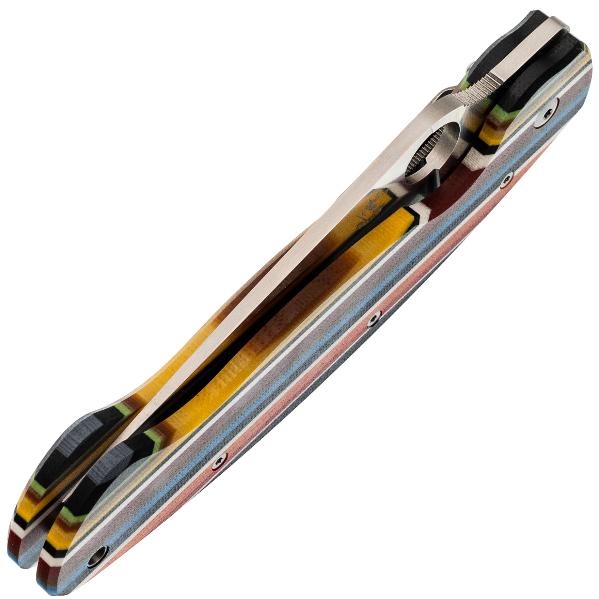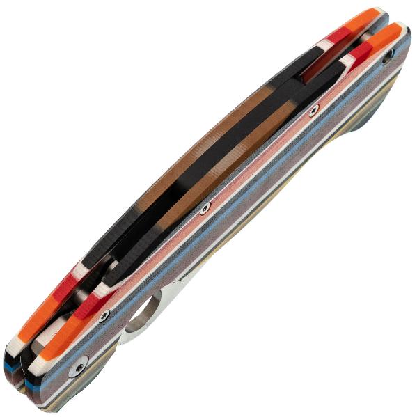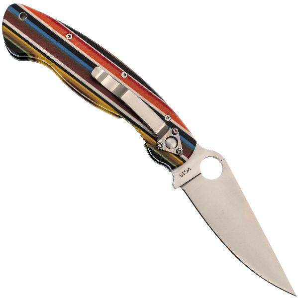 Клинок выполнен в форме Drop-Point, которая обеспечивает хорошую проникающую способность и эффективный рез. Клинок выполнен из стали VG-10 — это коррозионностойкая сталь, разработанная японской компанией «Takefu Special Steel» специально для изготовления ножей. V Gold 10 (сокращенно VG-10) стала причиной всемирной популярности этой компании. Эта сталь имеет крайне высокие показатели износостойкости за счёт легирования кобальтом, закаляется до 60-62 HRC, но при этой твёрдости может приобретать значительную хрупкость, поэтому стоит избегать тяжёлых работ по грубым материалам. Однако при закалке 58 HRC эта сталь начинает выдерживать довольно высокие нагрузки. VG-10 хорошо поддаётся заточке, но стоит быть осторожным с использованием алмазных и эльборовых брусков, так как они могут привести к выкрашиванию режущей кромки. Эта сталь хорошо поддаётся шлифовке и термообработке, также она хорошо держит режущую кромку и при должном уходе прослужит вам долго. Также стоит обратить внимание на то, что VG-10 имеет довольно среднюю устойчивость к коррозии и во влажном климате или частом контакте с жидкостями она требует тщательного ухода.