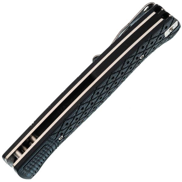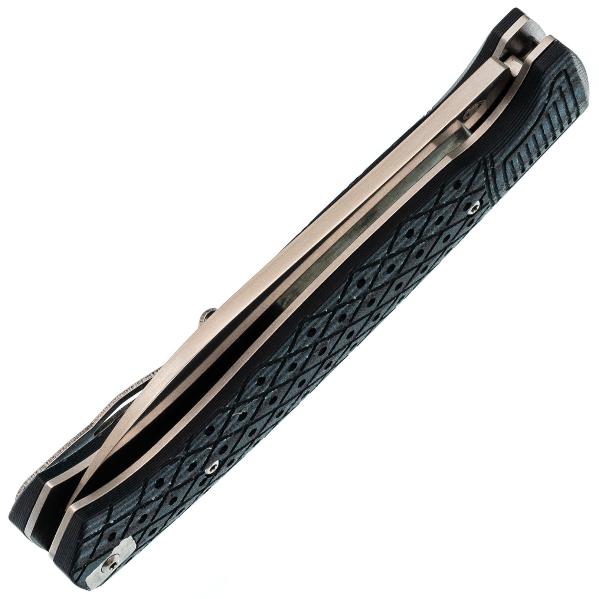 Рукоять выполнена из G10 -— это композитный материал, в основе которого лежат стеклоткань и эпоксидная смола. Стекловолокно вымачивается в эпоксидной смоле, после чего подвергается сжатию. На выходе получается прочный и неприхотливый материал, устойчивый к ударам, влаге и высокой температуре. G10 прекрасно противостоит агрессивной внешней среде, благодаря чему имеет высокую популярность у производителей фиксированных и складных ножей. Такие ножи могут иметь самый широкий спектр применения от EDC, до работы в экстремальных условиях. Ещё одно преимущество это стеклотекстолита – он легко поддаётся окрашиванию в любые цвета. Внешне G10 похож на микарту, но превосходит её в прочности и огнестойкости. Эргономичная форма рукояти удобно ложится в ладонь, обеспечивая контроль при любом хвате. Нож оснащён карманной стальной клипсой глубокой посадки, которая позволяет носить его с комфортом в повседневной одежде практически незаметно.