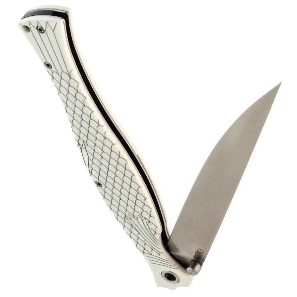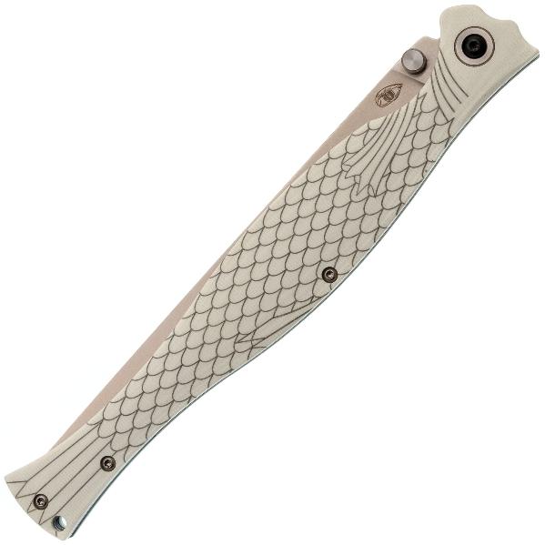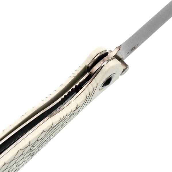 Клинок Лаврака имеет уникальную форму с прямыми спусками от обуха, что позволяет ему не только легко резать, но и эффективно прокалывать материалы. Это делает его особенно подходящим для точных кулинарных работ или рыболовных нужд, где важна аккуратность. Выполнен клинок из стали VG10 — это коррозионностойкая сталь, разработанная японской компанией «Takefu Special Steel» специально для изготовления ножей. V Gold 10 (сокращенно VG-10) стала причиной всемирной популярности этой компании. Эта сталь имеет крайне высокие показатели износостойкости за счёт легирования кобальтом, закаляется до 60-62 HRC, но при этой твёрдости может приобретать значительную хрупкость, поэтому стоит избегать тяжёлых работ по грубым материалам. Однако при закалке 58 HRC эта сталь начинает выдерживать довольно высокие нагрузки. VG-10 хорошо поддаётся заточке, но стоит быть осторожным с использованием алмазных и эльборовых брусков, так как они могут привести к выкрашиванию режущей кромки. Эта сталь хорошо поддаётся шлифовке и термообработке, также она хорошо держит режущую кромку и при должном уходе прослужит вам долго. Также стоит обратить внимание на то, что VG-10 имеет довольно среднюю устойчивость к коррозии и во влажном климате или частом контакте с жидкостями она требует тщательного ухода. Ещё стоит учесть, что, несмотря на свою остроту, клинок не предназначен для работы с грубыми нагрузками, что следует учитывать при эксплуатации. Надёжный замок Liner-lock гарантирует безопасность и надёжность фиксации клинка во время работы.