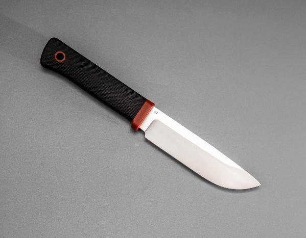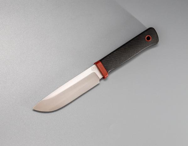 Клинок формы Drop-Point выполнен из стали D2, которая славится своей высокой твёрдостью и отличной износостойкостью. Это инструментальная сталь американского производства. D2 одна из самых популярных ножевых сталей в мире. Она содержит 12% хрома, что не позволяет ей называться нержавеющей, поэтому после работы с ножом, клинок необходимо протирать насухо. Из положительных характеристик стоит отметить, что она хорошо держит режущую кромку острой и обладает неплохой ударной вязкостью. Клинок обладает хорошей проникающей способностью. Поверхность лезвия обработана методом Stone Wash, благодаря чему она не бликует, а любые царапины на клинке гораздо более незаметны.