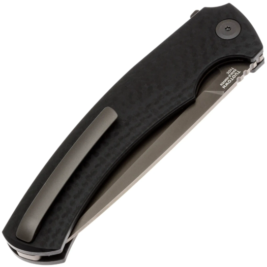 Форма клинка Drop Point позволяет эффективно выполнять различные задачи - от нарезки до проколов. Клинок ножа выполнен из стали T10S, которая широко используется благодаря своей высокой твёрдости и износостойкости. Сталь T10S — высокоуглеродистая и коррозионностойкая сталь, содержащая легирующие элементы: кобальт и молибден. Она производится по специальному заказу компании TuoTown в Китае. По своим свойствам сталь T10S является полным аналогом японской стали Vg-10. В настоящее время найти оригинальную японскую сталь на рынке очень сложно и дорого. Однако за долгие годы существования Vg-10 другие металлургические производства научились создавать её аналоги. Поэтому, чтобы не вводить покупателей в заблуждение, компания TuoTown решила использовать свою марку стали. Твёрдость её достигает 60 HRC, что делает нож острым и долговечным. Однако важно отметить, что сталь T10S не является нержавеющей, поэтому для поддержания её качеств требуется правильный уход, особенно в условиях повышенной влажности или агрессивной среды. Покрытие клинка black-PVD защищает его от бликов и внешнего воздействия Нож оснащён надёжным замком Liner-lock, который обеспечивает безопасность при работе с ножом. Открытие ножа осуществляется с помощью флиппера, а благодаря осевому узлу с керамическими подшипниками, механизм открытия становится более плавным, что обеспечивает комфортное использование ножа без лишних усилий.
