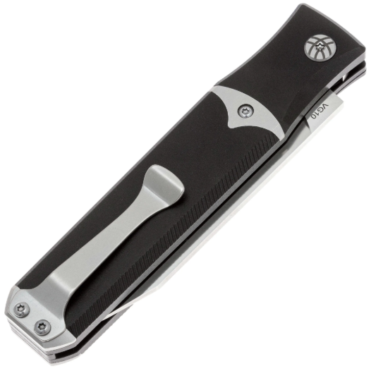Клинок формы Clip-Point, обеспечивающий точность при резе и отличные проникающие свойства. Он выполнен из стали VG10 — это коррозионностойкая сталь, разработанная японской компанией «Takefu Special Steel» специально для изготовления ножей. V Gold 10 (сокращенно VG-10) стала причиной всемирной популярности этой компании. Эта сталь имеет крайне высокие показатели износостойкости за счёт легирования кобальтом, закаляется до 60-62 HRC, но при этой твёрдости может приобретать значительную хрупкость, поэтому стоит избегать тяжёлых работ по грубым материалам. Однако при закалке 58 HRC эта сталь начинает выдерживать довольно высокие нагрузки. VG-10 хорошо поддаётся заточке, но стоит быть осторожным с использованием алмазных и эльборовых брусков, так как они могут привести к выкрашиванию режущей кромки. Эта сталь хорошо поддаётся шлифовке и термообработке, также она хорошо держит режущую кромку и при должном уходе прослужит вам долго. Также стоит обратить внимание на то, что VG-10 имеет довольно среднюю устойчивость к коррозии и во влажном климате или частом контакте с жидкостями она требует тщательного ухода. Обработка клинка выполнена методом сатинирования, что придаёт ему характерную штриховку, улучшая внешний вид.