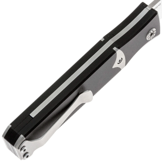 Рукоять выполнена из анодированного алюминия. Этот материал отличается лёгкостью, прочностью и устойчивостью к износу. Благодаря гладким формам и эргономичной конструкции нож приятно держать в руке, а его минималистичный дизайн подчёркивает стиль ножа. Для удобства ношения предусмотрена двухпозиционная клипса, которая позволяет закрепить нож на кармане в удобном для вас положении.