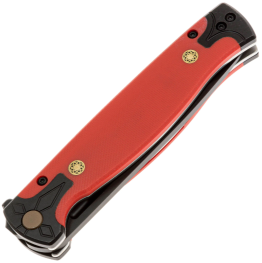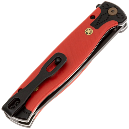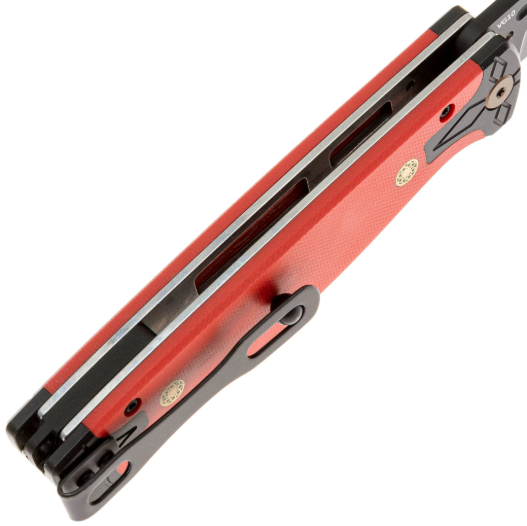 Рукоять выполнена из G10 -— это композитный материал, в основе которого лежат стеклоткань и эпоксидная смола. Стекловолокно вымачивается в эпоксидной смоле, после чего подвергается сжатию. На выходе получается прочный и неприхотливый материал, устойчивый к ударам, влаге и высокой температуре. G10 прекрасно противостоит агрессивной внешней среде, благодаря чему имеет высокую популярность у производителей фиксированных и складных ножей. Такие ножи могут иметь самый широкий спектр применения от EDC, до работы в экстремальных условиях. Ещё одно преимущество это стеклотекстолита – он легко поддаётся окрашиванию в любые цвета. Внешне G10 похож на микарту, но превосходит её в прочности и огнестойкости. Форма рукояти эргономичная, имеется двухпозиционная клипса, позволяющая выбрать удобный способ ношения на кармане, под правшу или левшу.