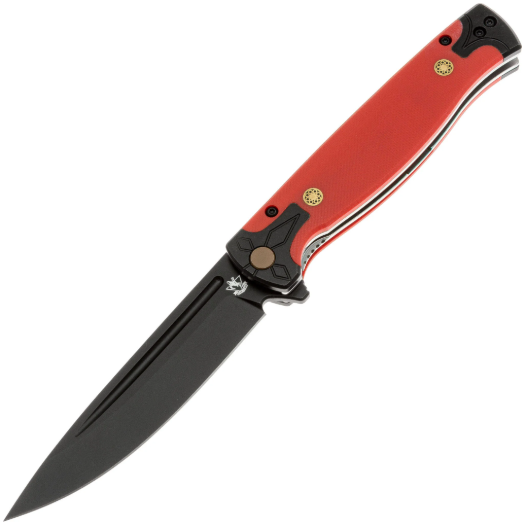 Клинок выполнен в популярной форме Drop-Point - универсальный профиль, подходящий для самых различных задач. Он изготовлен из стали VG-10 — это коррозионностойкая сталь, разработанная японской компанией «Takefu Special Steel» специально для изготовления ножей. V Gold 10 (сокращенно VG-10) стала причиной всемирной популярности этой компании. Эта сталь имеет крайне высокие показатели износостойкости за счёт легирования кобальтом, закаляется до 60-62 HRC, но при этой твёрдости может приобретать значительную хрупкость, поэтому стоит избегать тяжёлых работ по грубым материалам. Однако при закалке 58 HRC эта сталь начинает выдерживать довольно высокие нагрузки. VG-10 хорошо поддаётся заточке, но стоит быть осторожным с использованием алмазных и эльборовых брусков, так как они могут привести к выкрашиванию режущей кромки. Эта сталь хорошо поддаётся шлифовке и термообработке, также она хорошо держит режущую кромку и при должном уходе прослужит вам долго. Также стоит обратить внимание на то, что VG-10 имеет довольно среднюю устойчивость к коррозии и во влажном климате или частом контакте с жидкостями она требует тщательного ухода. Клинок имеет чёрное покрытие, которое уменьшает блики и дополнительно защищает сталь от коррозии. Спуски на 2/3 высоты клинка. Для открытия используется флиппер. За фиксацию отвечает liner-lock - надёжный и проверенный механизм, который отлично удерживает клинок в открытом положении.