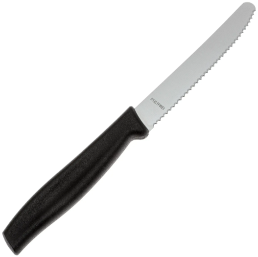 Рукоять эргономичной формы выполнена из прочного пластика. Благодаря слегка шероховатой поверхности она надёжно фиксируется в ладони и не скользит даже при работе влажными руками. Этот нож станет удобным помощником на кухне - как для завтраков, так и для повседневной готовки.