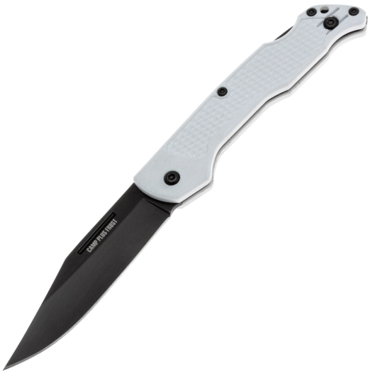 Клинок имеет классическую форму clip-point, обеспечивающую хороший контроль при резе и высокую проникающую способность. Он изготовлен из нержавеющей стали 420, которая отличается высокой коррозионной стойкостью и лёгкостью в заточке, что делает её хорошим выбором для туристических EDC-ножей. Чёрное покрытие защищает клинок от царапин и снижает блики. Для удобного открытия на клинке предусмотрена подпальцевая выемка, а надёжную фиксацию в рабочем положении обеспечивает проверенный временем механизм back-lock, который надёжно удерживает лезвие и предотвращает случайное складывание.