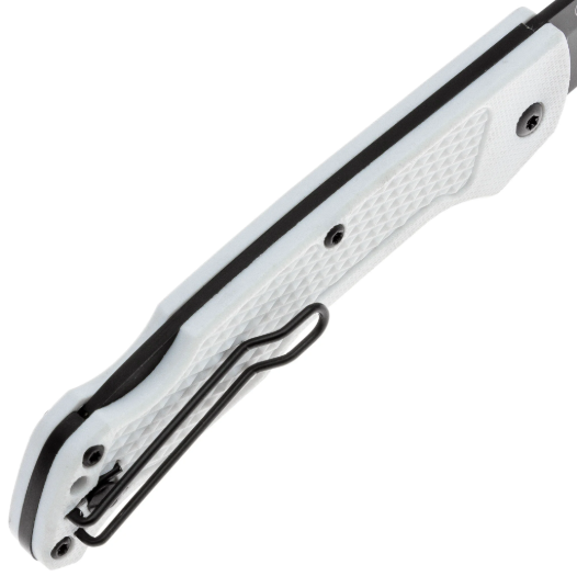Рукоять выполнена из GFN (Glass Filled Nylon) - прочного и лёгкого нейлона, армированного стекловолокном, устойчивого к ударам, влаге и перепадам температур. Её эргономичная форма с рельефными насечками обеспечивает комфортный хват и контроль при работе. Для удобного ношения предусмотрена карманная клипса, позволяющая закрепить нож в удобном положении.
