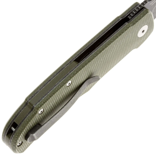 Клинок выполнен в форме модифицированного tanto с характерными линиями, обеспечивающими превосходную прочность кончика и универсальность в работе. Сталь Nitro-V представляет собой современный высокотехнологичный сплав, который сочетает превосходное удержание остроты и коррозионную стойкость на самом высоком уровне. Эта сталь обеспечивает отличный баланс между остротой режущей кромки, долговечностью и простотой заточки. Ножи с клинком из стали Nitro-V по общим характеристикам напоминают ножи из шведской стали Sandvik 14C28N. Обработка клинка методом Blackstonewash придаёт ножу тактический матовый вид, эффективно предотвращая световые блики и маскируя следы эксплуатации. За открытие отвечает удобный флиппер с шарикоподшипниками, обеспечивающий плавное и быстрое раскрытие одной рукой. Замок Liner-lock гарантирует надёжную фиксацию клинка и исключает люфты даже при интенсивной работе.