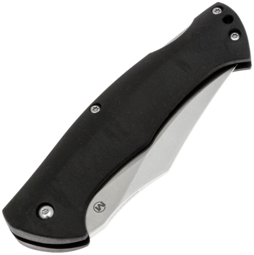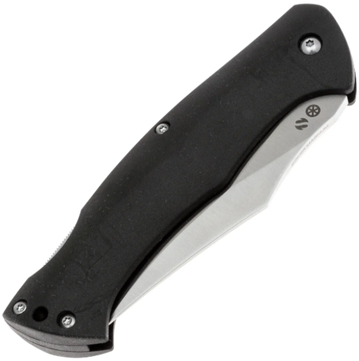Клинок выполнен в универсальной форме Clip-Point, что обеспечивает отличные режущие характеристики и точность реза. Сталь используется 440B. Она обладает высокой прочностью и устойчивостью к коррозии. Сталь 440B является высокоуглеродистой мартенситной нержавеющей сталью. Она может быть закалена до 58 HRC, что делает её идеальной для изготовления надёжных и долговечных клинков. В стали достигнут баланс между устойчивостью к коррозии и прочностью, что особенно важно для ножей, предназначенных для повседневного пользования. Также ей присуща лёгкость заточки и поддержание остроты режущей кромки в повседневном использовании. Сатинированная обработка поверхности придаёт клинку благородный внешний вид и эффективно скрывает следы эксплуатации. За открытие клинка отвечает традиционное ручное открывание за клинок, что подчёркивает классический подход к дизайну без лишних механизмов. Надёжный замок Back-Lock обеспечивает безопасную фиксацию клинка в рабочем положении и исключает случайное складывание при работе.