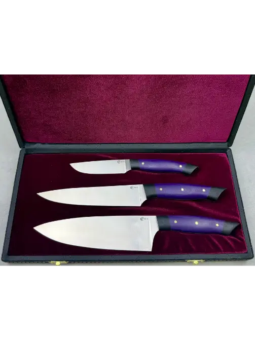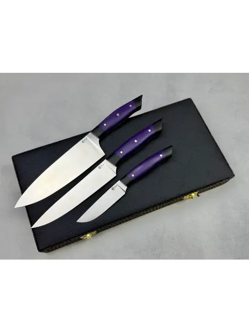 Представляем вам уникальный кухонный набор из трех ножей "Хозяин", изготовленный в Мастерской Семина г. Ворсма. Эти ножи являются воплощением мастерства и качества, сочетают в себе современные технологии и традиционные методы изготовления.