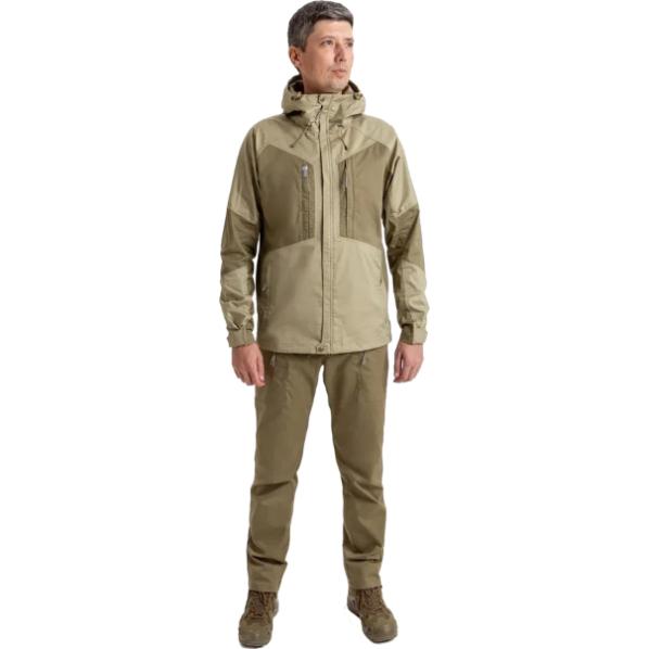 Ткань верха:DRIVE Технология: WR Состав: 58% хб, 40% пэ, 2% сп Плотность ткани: 140гр Особенности модели: КУРТКА, БРЮКИ: — центральная застежка на молнии, закрыта планкой — капюшон с регулировкой по объему, по лицевому краю — карманы куртки: 2 нагрудных на молнии, закрыты планками; 2 нижних на молнии, закрыты планками; 1 внутренний карман на молнии — карманы брюк: 4 боковых с подрезным бочком; 2 набедренных на молнии, закрыты планками — регулировка по низу рукавов на пату и велкро — регулировка объема по низу куртки — пояс брюк на эластичной резинке, имеются шлевки — полукольца D-Ring для крепления аксессуаров Эволюция бестселлера Atlas. Костюм специально разработан для жаркой погоды. Материалы: Костюм выполнен из ткани Drive с плетением Micro Rip-Stop (58% хб, 40% пэ, 2% спандекс). Материал идеально сбалансирован: хлопок обеспечивает отличную вентиляцию, спандекс дает свободу движений, а армированная нить — высокую прочность на разрыв. Ткань устойчива к УФ-излучению (не выгорает) и имеет влагозащитную пропитку WR. Брюки: Эргономика: Набедренные карго-карманы перенесены на боковой шов. Это позволило увеличить вместимость и эргономику: даже загруженные карманы сохраняют аккуратный силуэт и не мешают при ходьбе. Добавлены 2 дополнительных кармана для телефона/аксессуаров. Надежность: Конструкция стала монолитной — отказ от лишних вставок повысил общую износостойкость. Функционал: Верхняя часть брюк, оснащена D-кольцами для крепления аксессуаров. Система хранения: 4 боковых кармана с подрезным бочком и 2 набедренных на молнии. Куртка: Центральная молния закрыта ветрозащитной планкой. Все внешние карманы (2 нагрудных и 2 нижних) оснащены молниями и защитными планками, что гарантирует полную сохранность содержимого. Предусмотрен внутренний карман для документов. Капюшон, манжеты и низ куртки регулируются для идеальной посадки. Палитра: Используются только натуральные оттенки, во избежание перегрева на солнце.